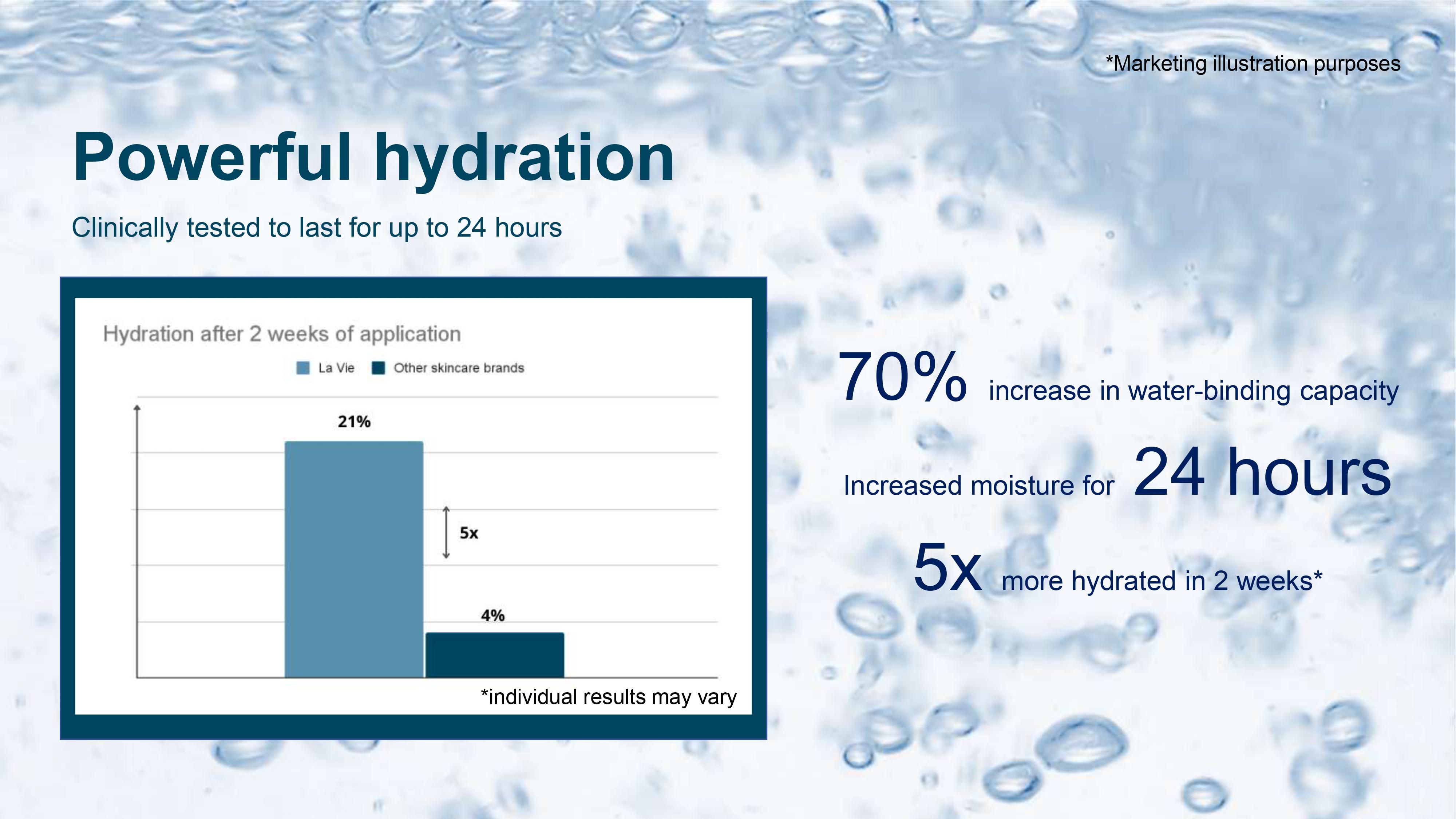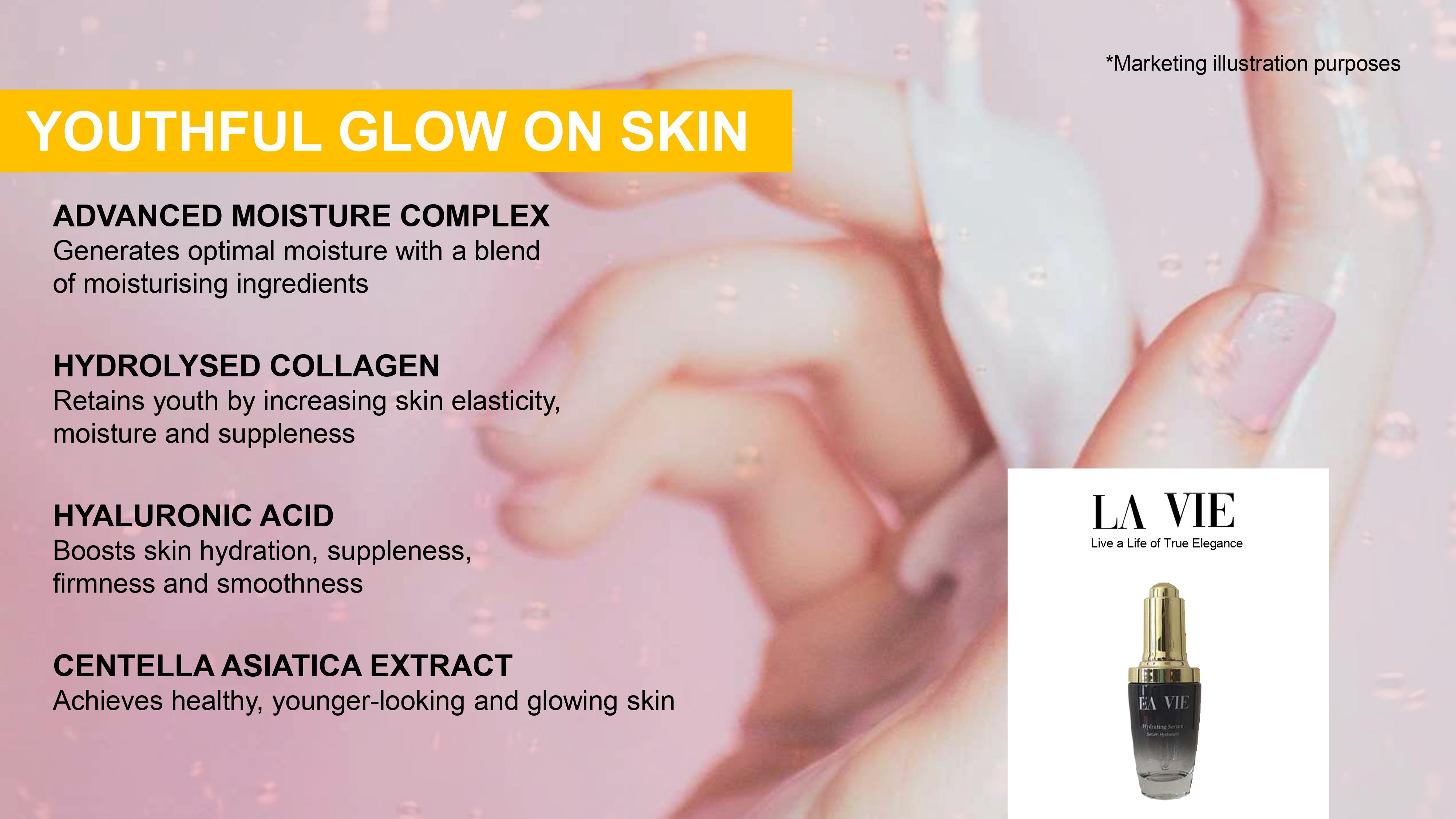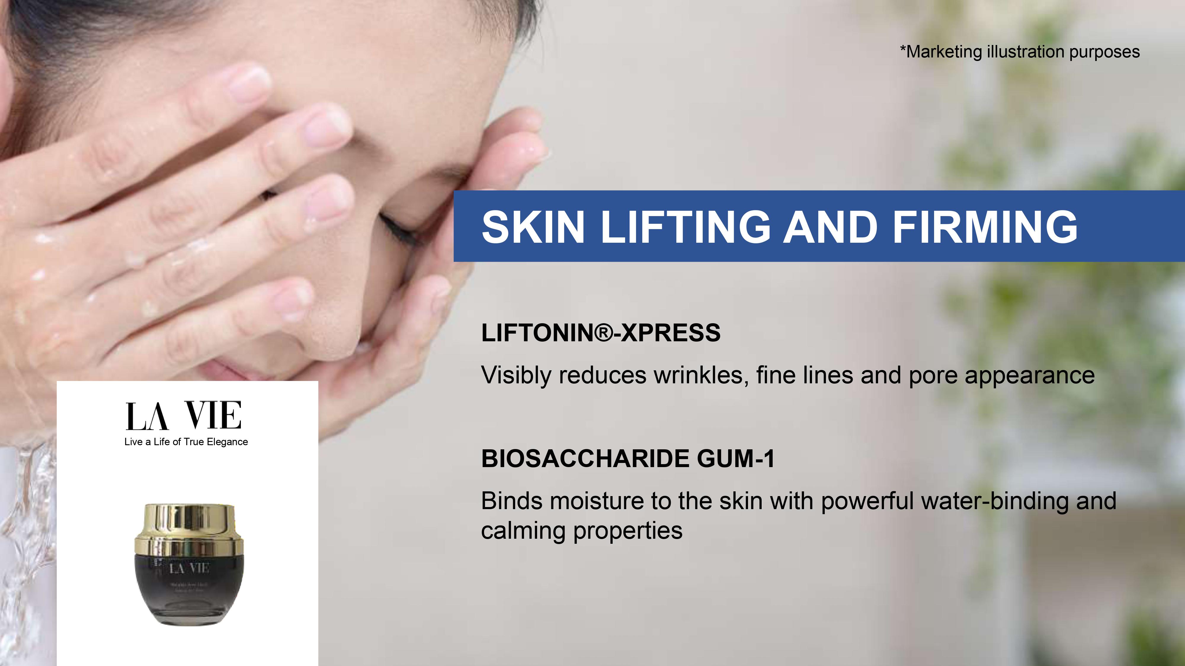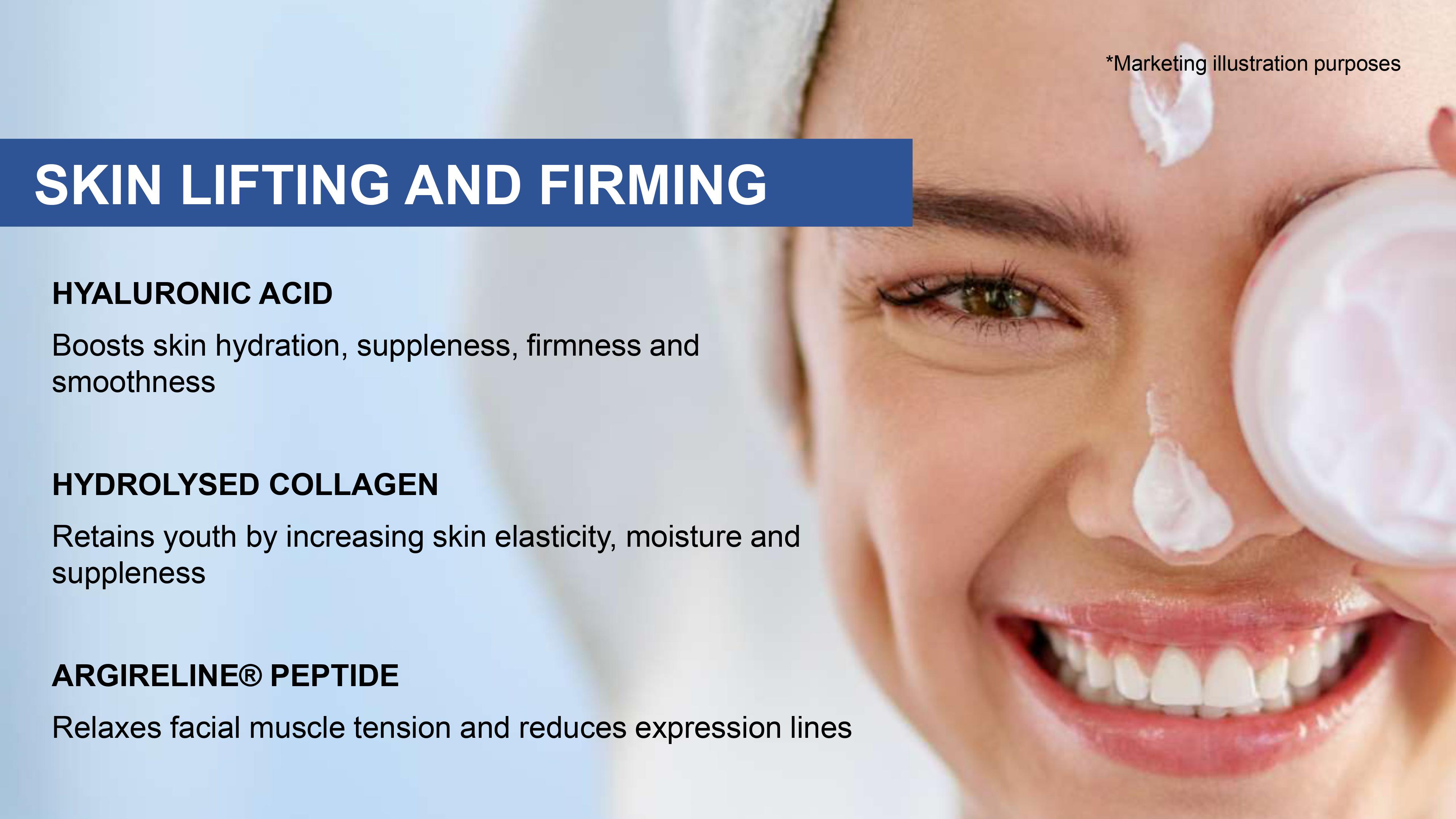 Boosts skin hydration, suppleness, firmness and smoothness